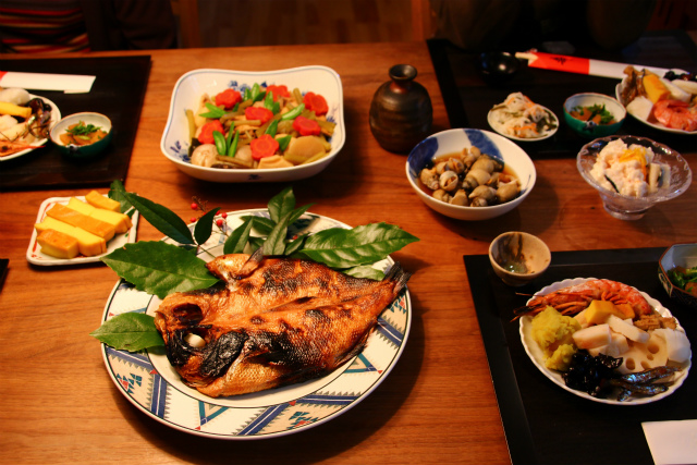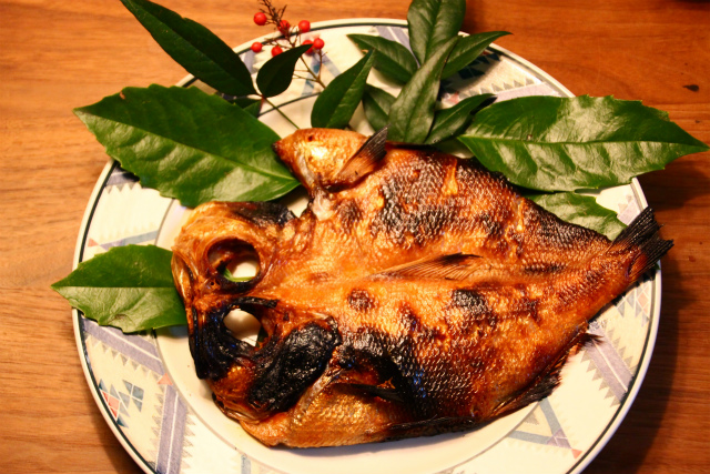 いつも、小田原の友人が送ってくれる金目鯛の開きが今年もメインです