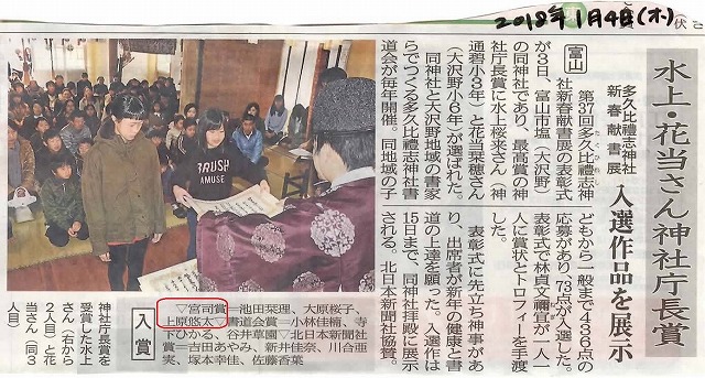 悠太、献書展で宮司賞(1月)