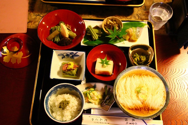 滝に打たれる修行場があるという大岩山日石寺。何軒かある旅館で「素麺」が有名らしく、いただいてきました。素麺だけではなく、山菜の定食だったけど、めっちゃおいしかった。